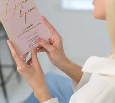 Klientams, besilanktantiems procedūrose kabinete, suteikiamas individualiai sugeneruotas nuolaidos kodas - kosmetiką galite įsigyti ypatingomis kainomis!